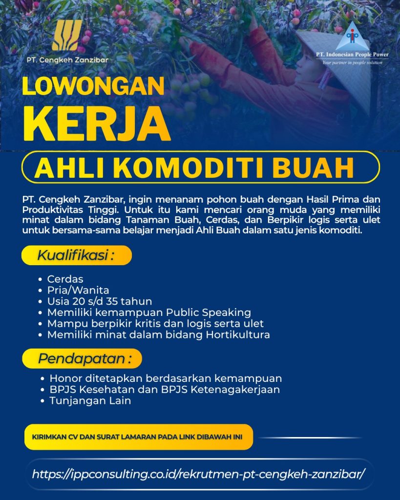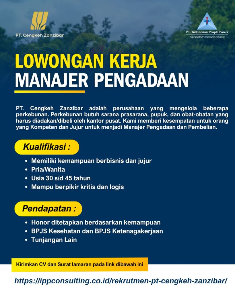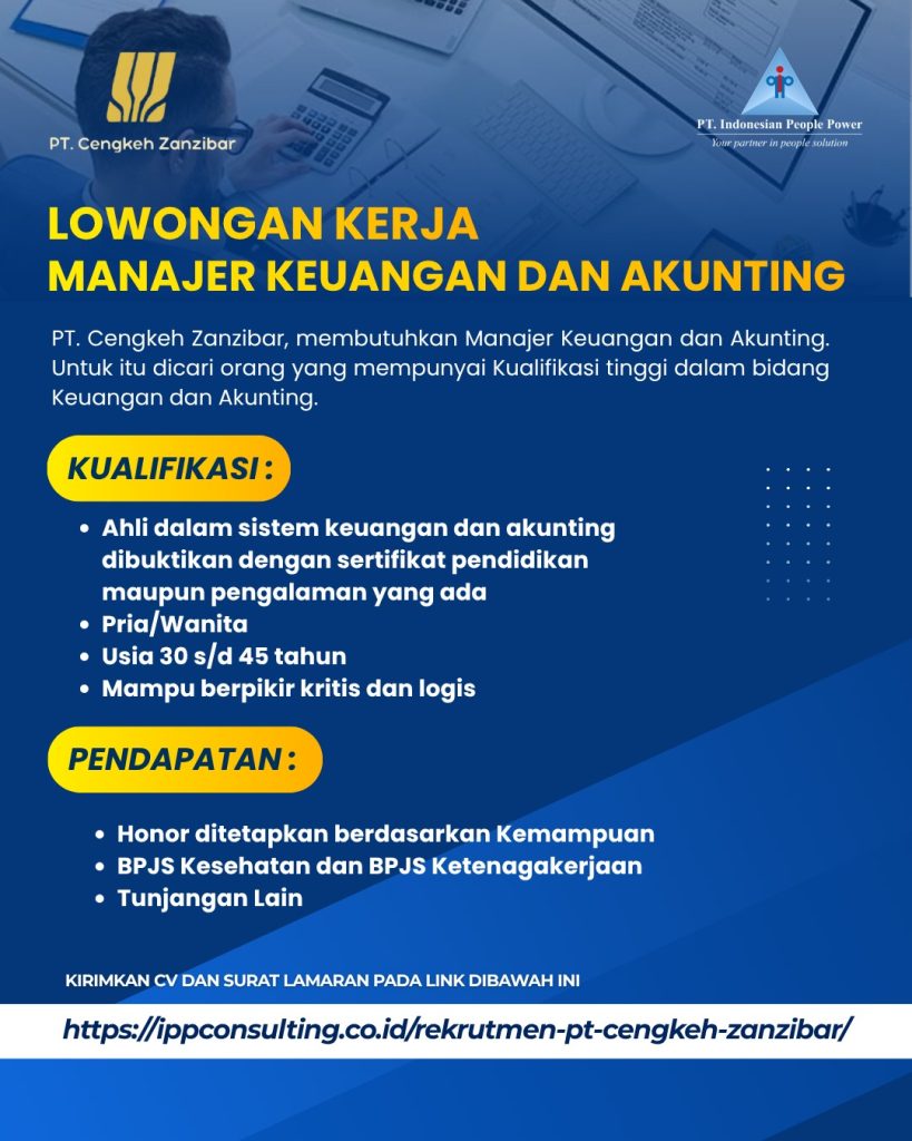 - PT.Cengkeh Zanzibar, membutuhkan MANAJER KEUANGAN DAN AKUNTING.