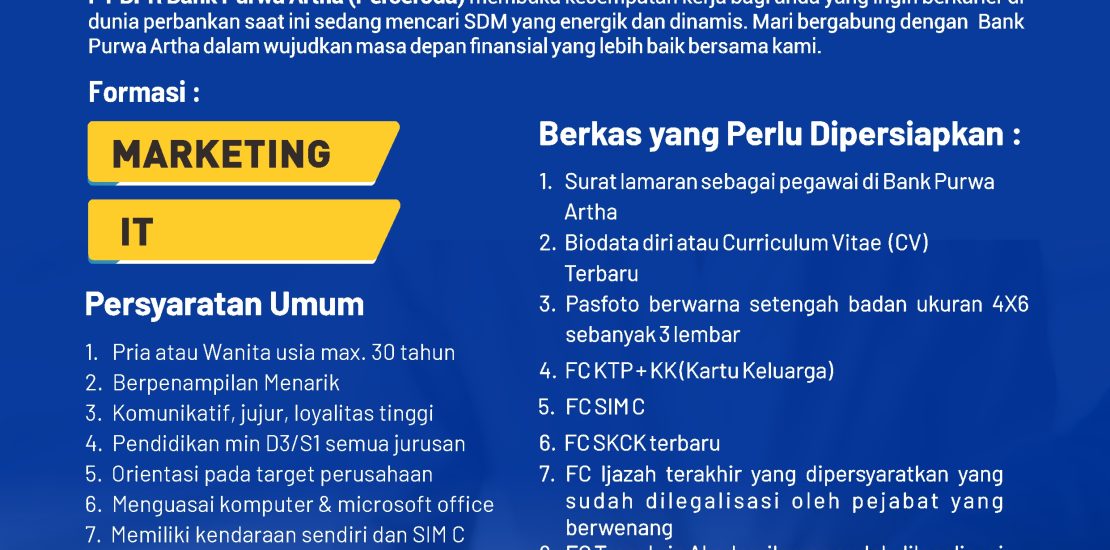 Rekrutmen Calon Pegawai Bank Purwa Artha